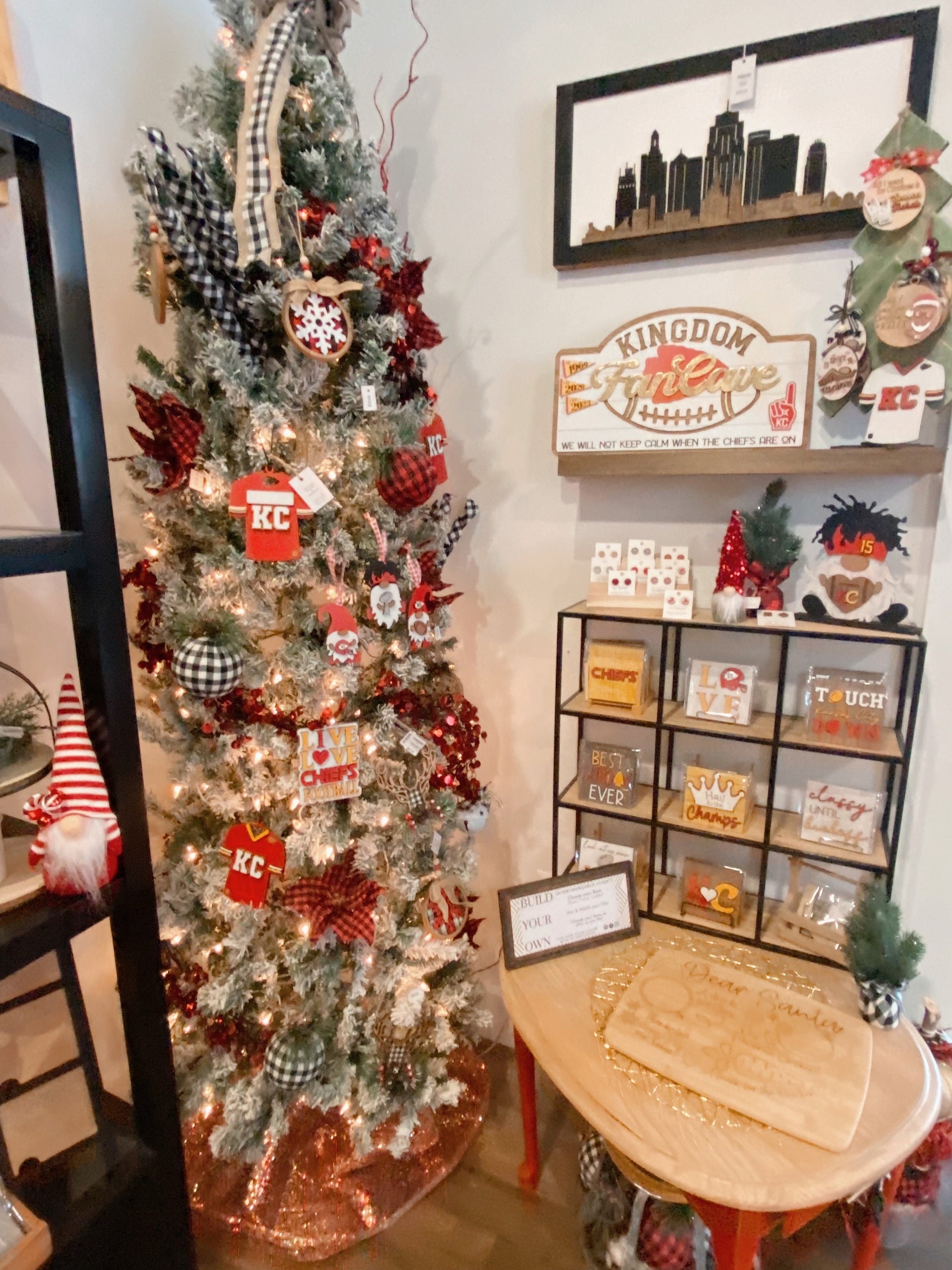We have an entire coordinating Chiefs collection. Check our store for bookstacks, signs, tiered tray pieces, shelf sitters, ladder charms, bag charms, earrings and more!